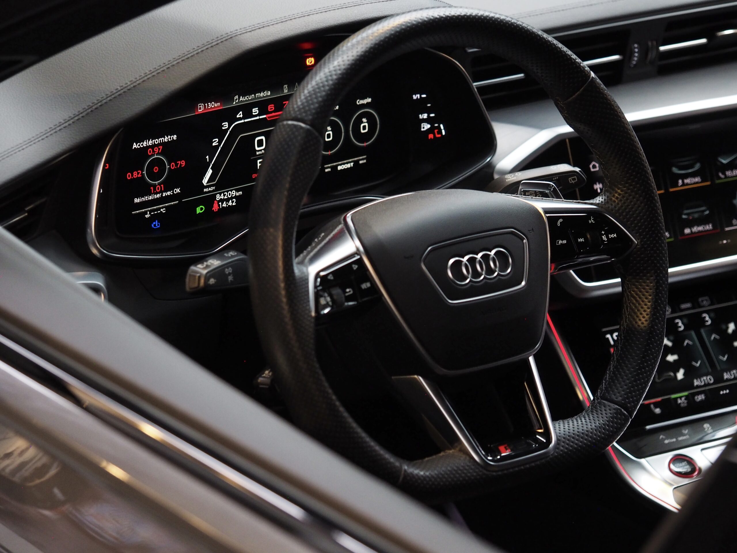 Sièges sport Audi RS Alcantara / cuir noir – Échappements sport RS finition noir – A8F Finition sport – Jantes Audi sport 22’’ noire / polies satinées – Boîte automatique 8 rapports Tiptronic S – Soft close portières – confort accès – Pack Audio B&O – Pack finitions ext noir satiné – Apple CarPlay – Navigation High Audi – Volant super sport RS multifonctions & chauffant – Chauffage véhicule auxiliaire – Caméra de recul + assistance angles morts – lane change warning – pdc av-arr – Finition Audi Exclusif Alcantara / cuir avec surpiqûres tableau de bord / portières – Pack lumière – Éclairage RS6 lumineux portières – Signature RS au sol – Suspension avec levage essieux av / arr – Régulateur vitesse avec distance – Teintage vitres arrières – FEUX LED dynamiques Audi – Feux auto – Pack sécurité enfants – Pack Assistance tour – Pack Connect + – Étriers freins rouge RS – Alarme – chargeur induction – Finition aluminium satiné mat – baies de portières éclairées – vitrage acoustique – Suspensions dynamiques – Sièges mémoires elec – logo RS dans siège – Rétroviseurs coquilles noires – pavillon de ciel noir – Soutiens lombaires – pommeau vitesse cuir – Système sécurité étendu – Climatiseur + 4 Ways – BT – protection coffre caoutchouc…