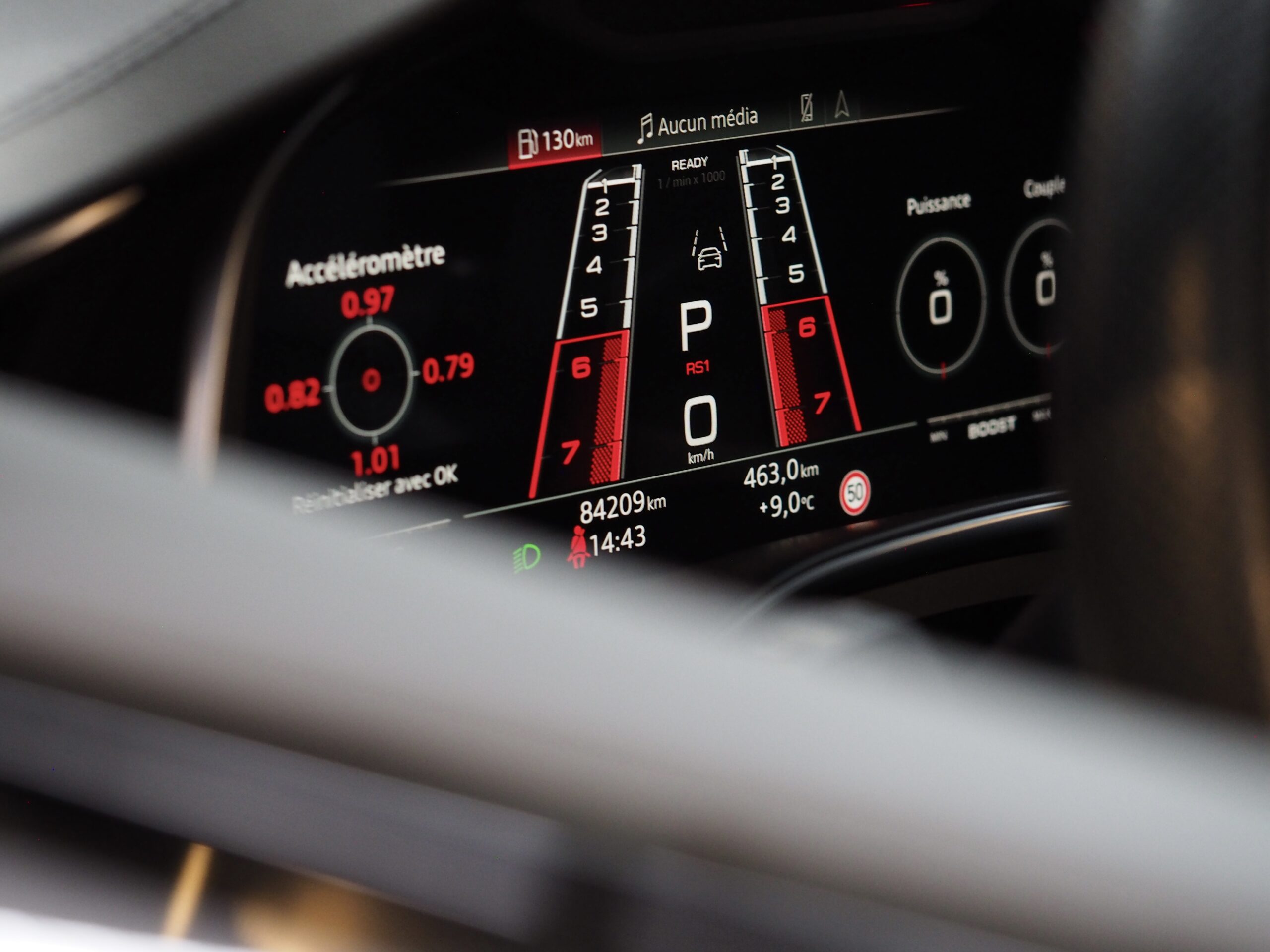 Intérieur : Sièges sport Audi RS cuir noir Alcantara.