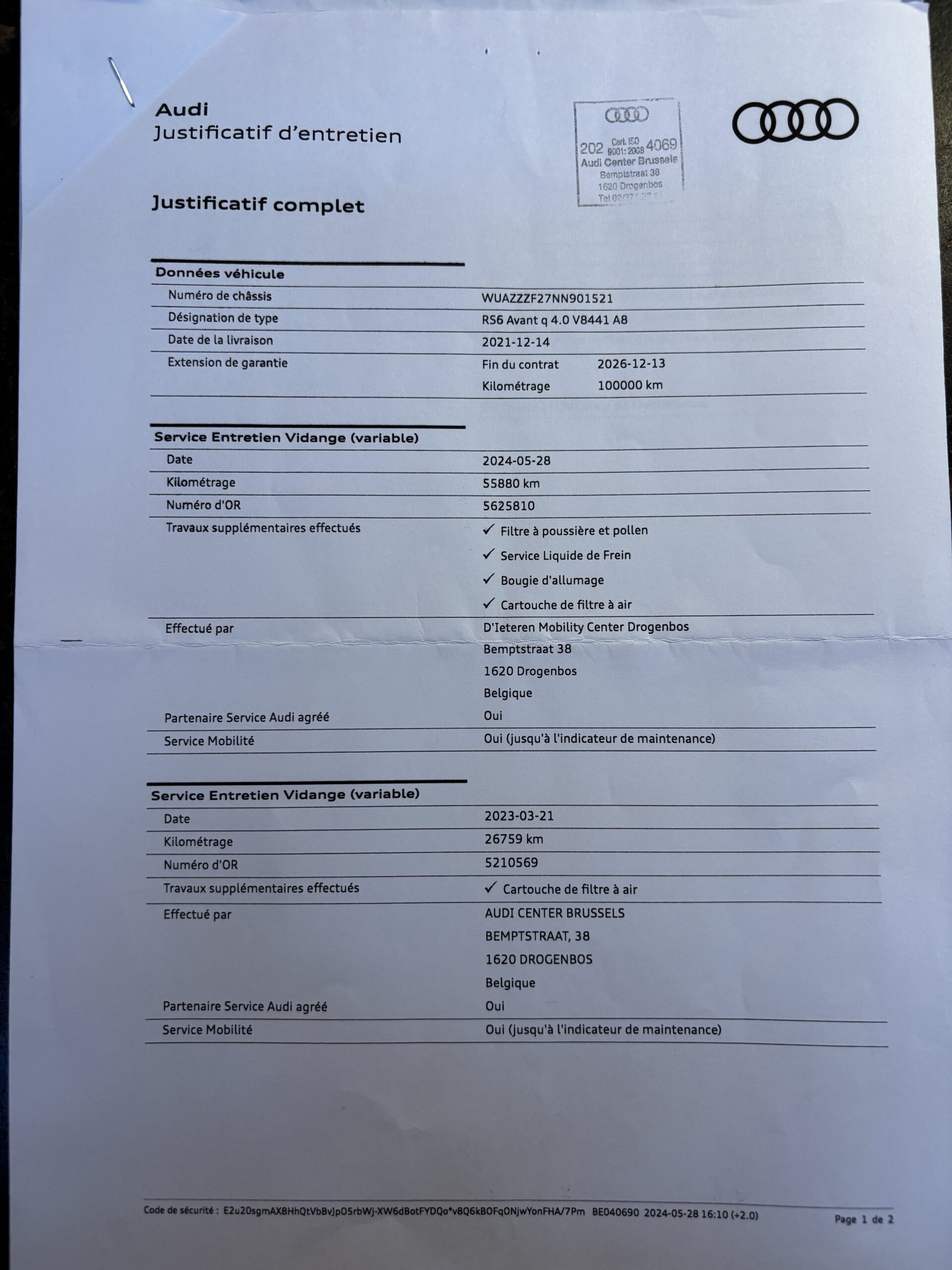 * 28/05/2024 – 55880 KMS – Audi Center Brussels Drogenbos.
