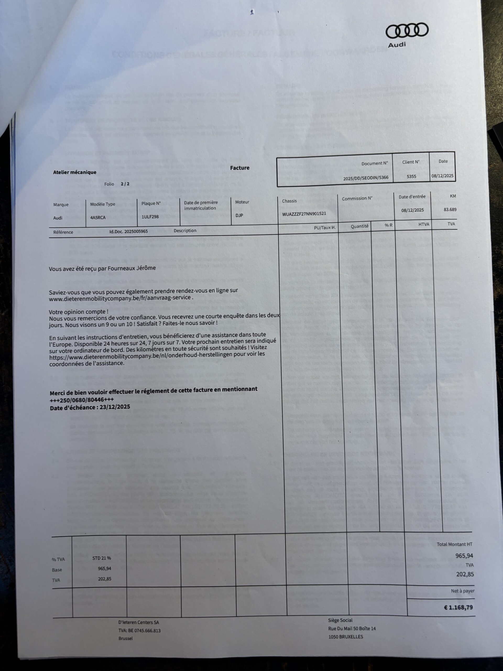 * 08/12/2025 – 83689 KMS – Audi Center Brussels.