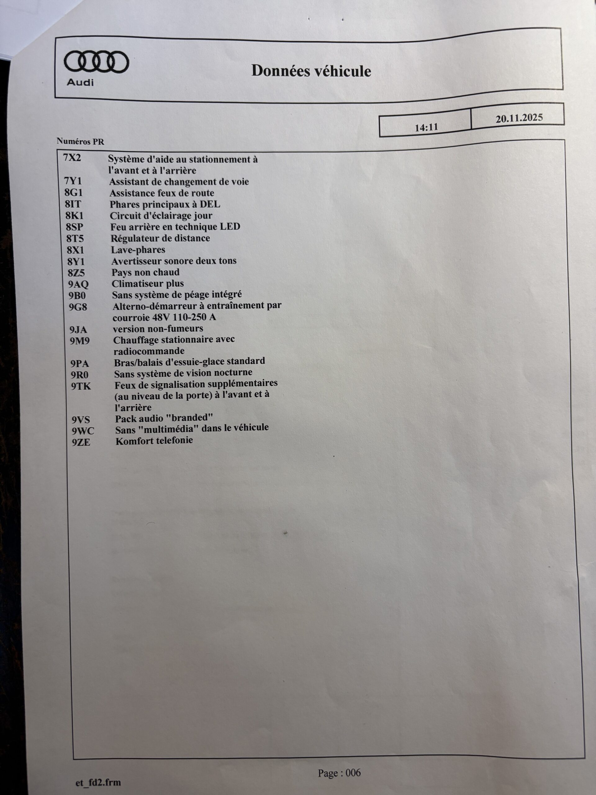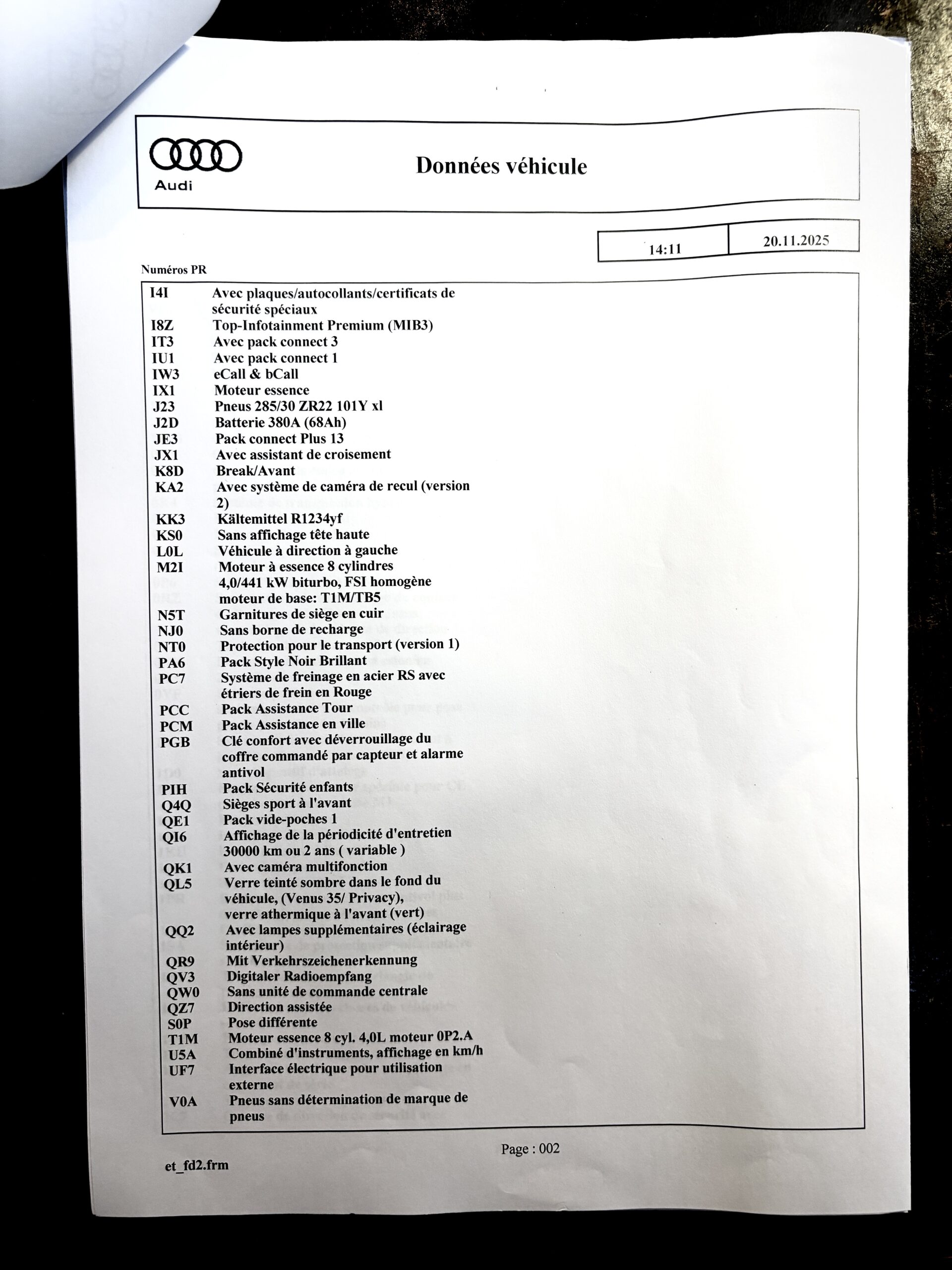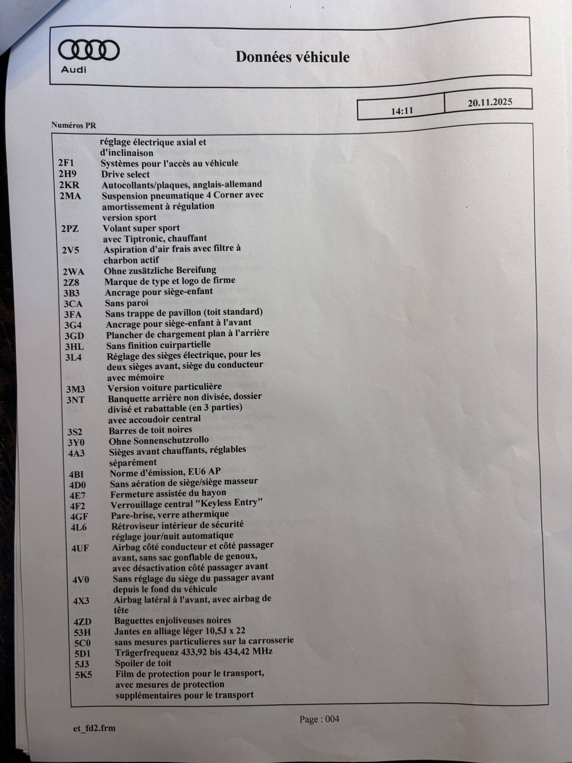 Véhicule livré neuf au Centre Audi Bielefeld Allemagne le 26/11/2021.