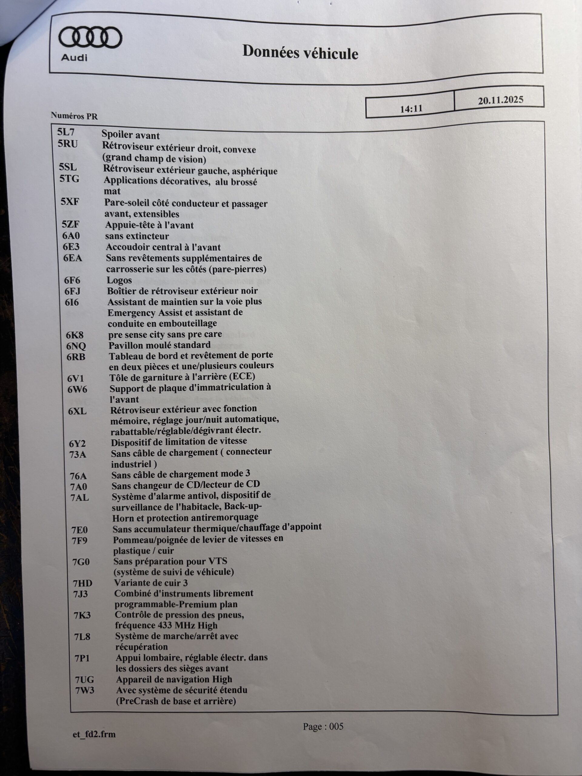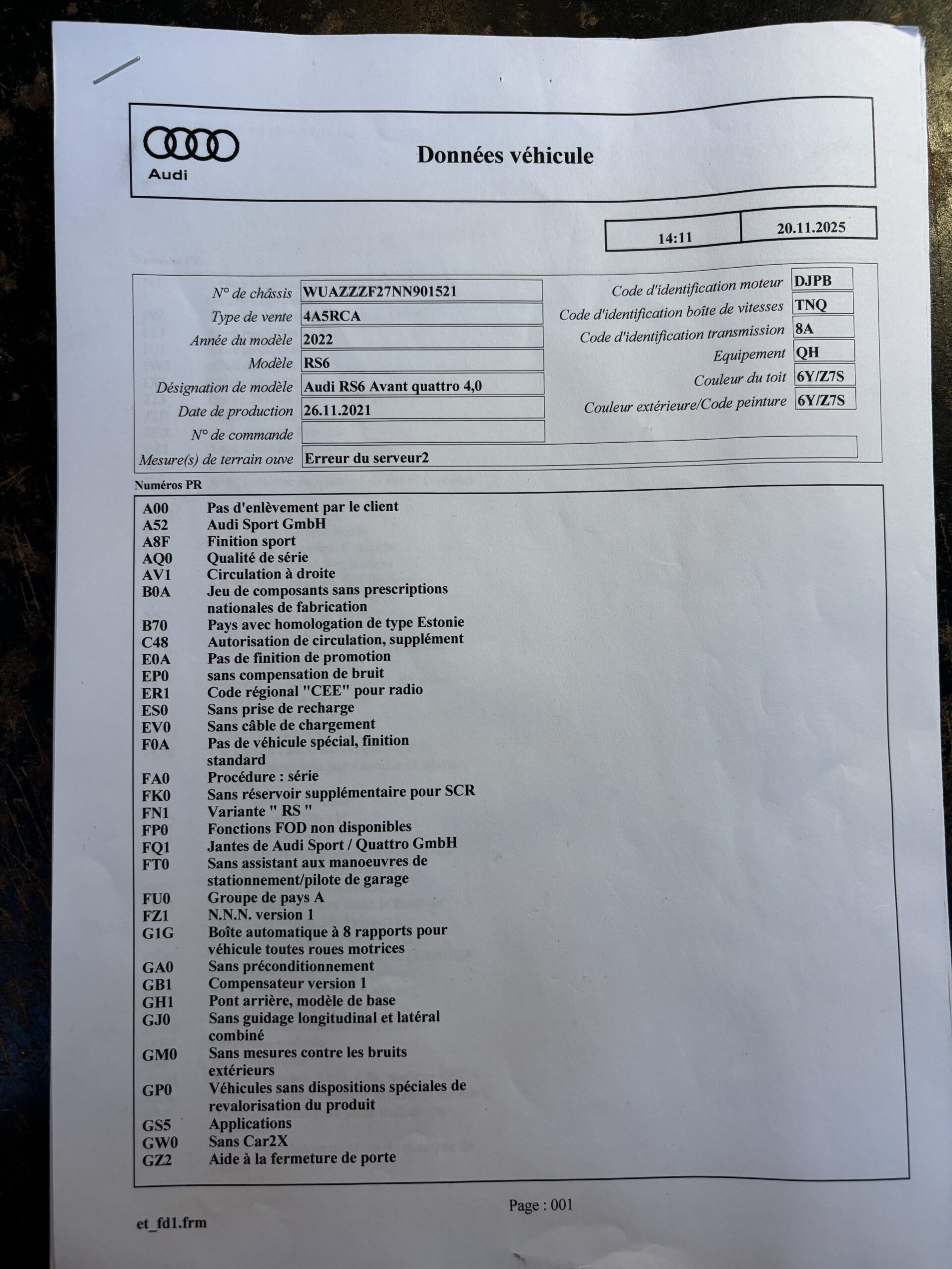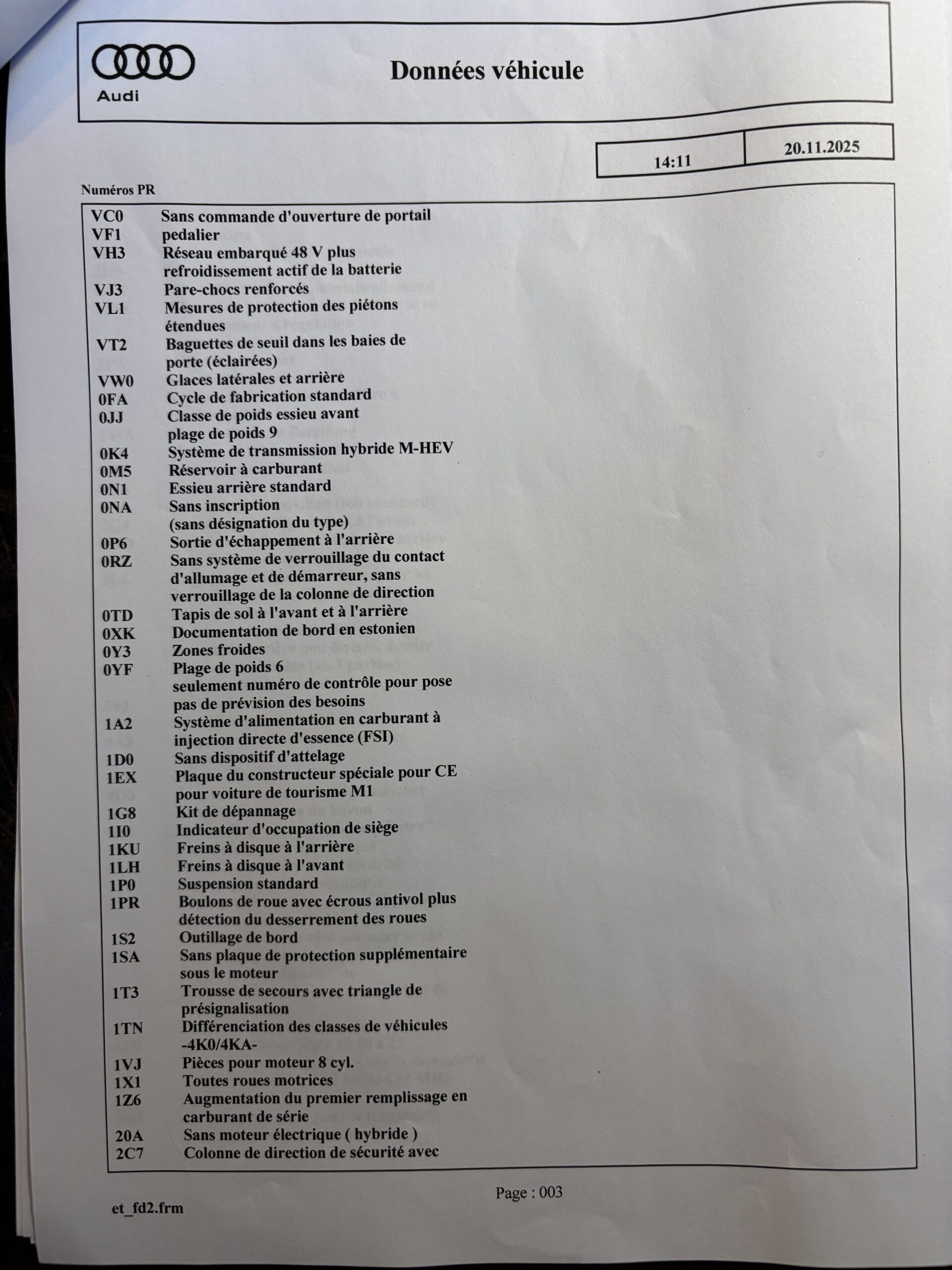 Véhicule livré neuf au Centre Audi Bielefeld Allemagne le 26/11/2021.