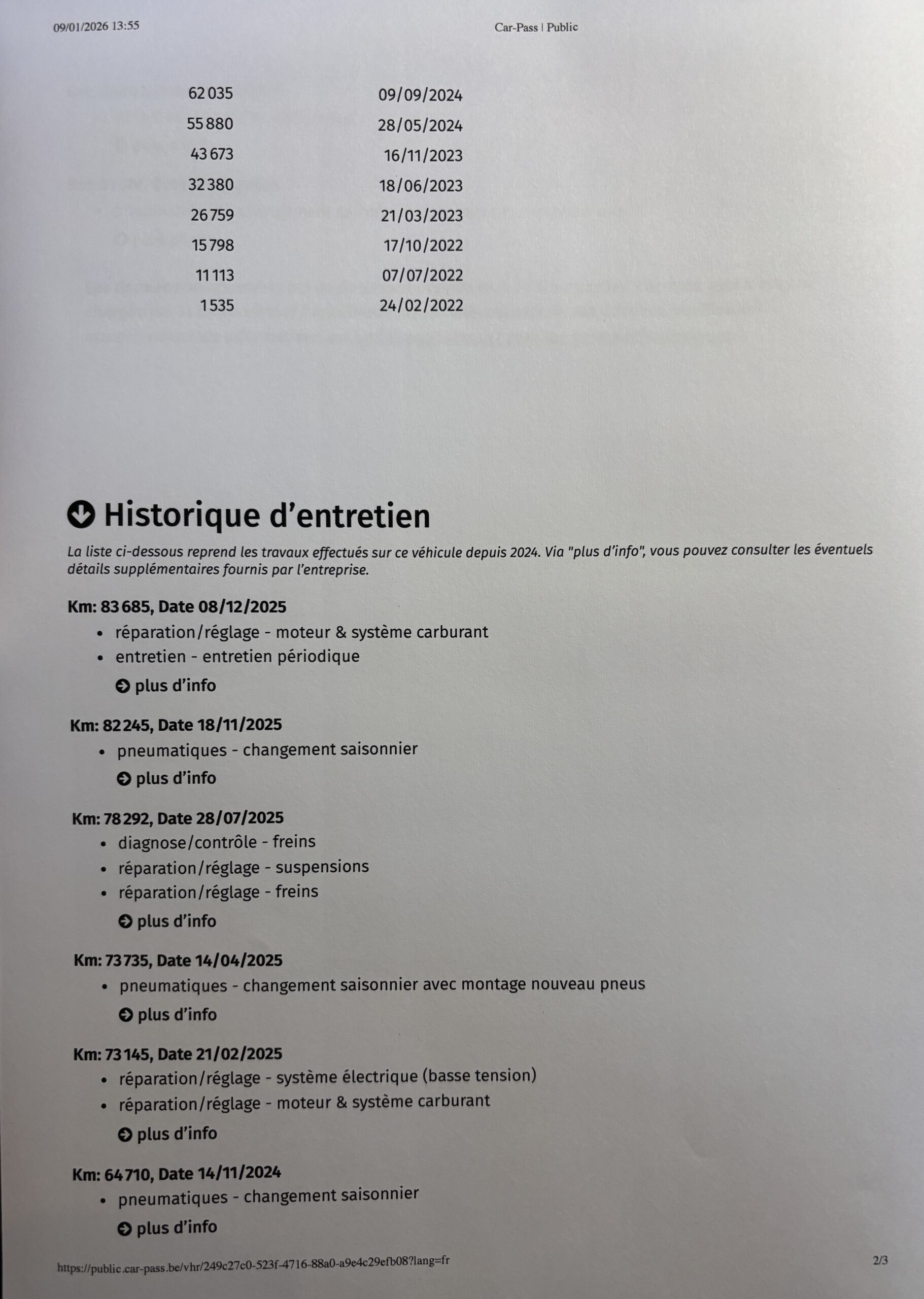 2ieme propriétaire depuis le 25/2/2022 à 1535 kms.
