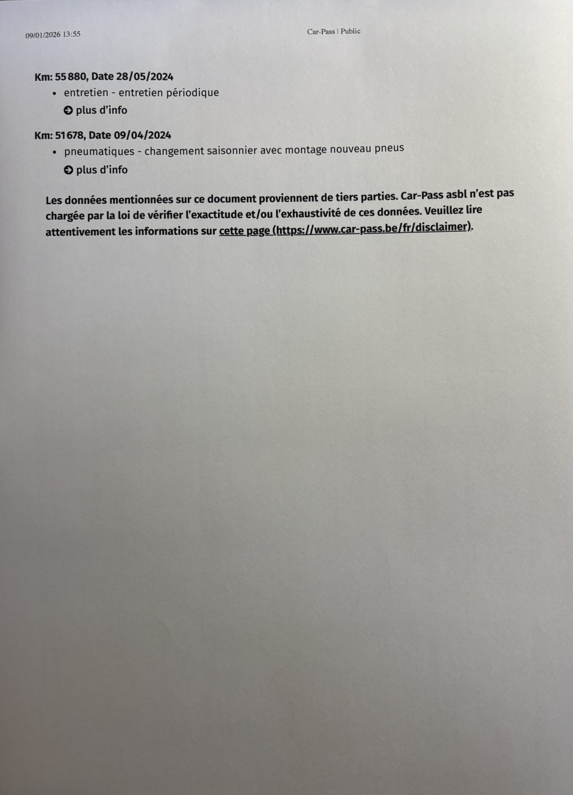 Aucun frais à prévoir sur le véhicule.