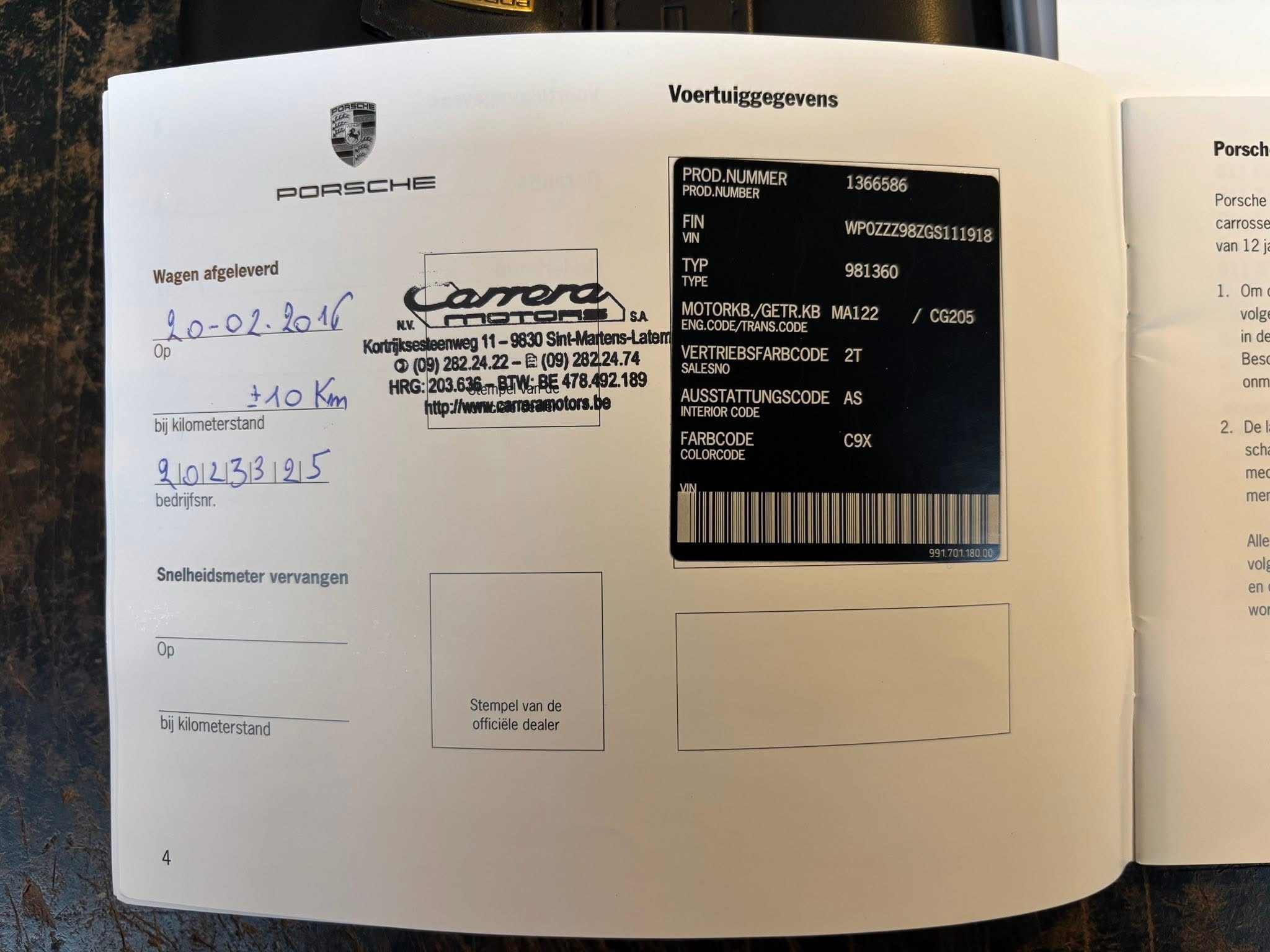Véhicule livré neuf au centre Porsche Carrera Motors Sint-Martens-Latem en février 2016.