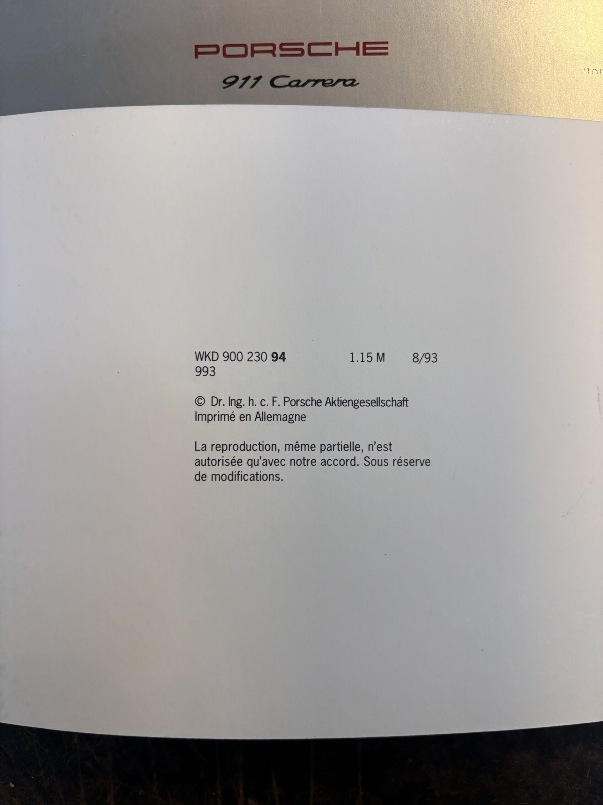 Pochette documentations Porsche d’origine.