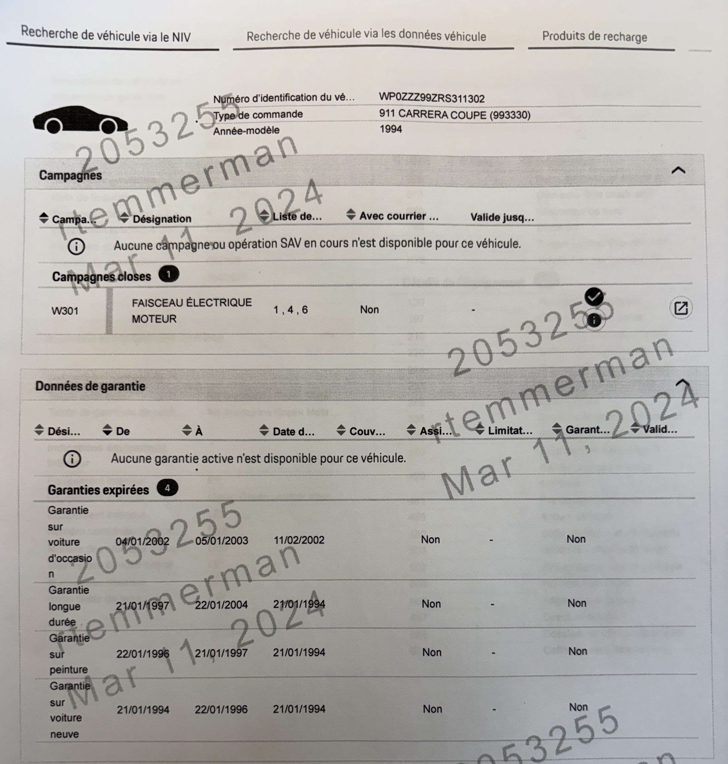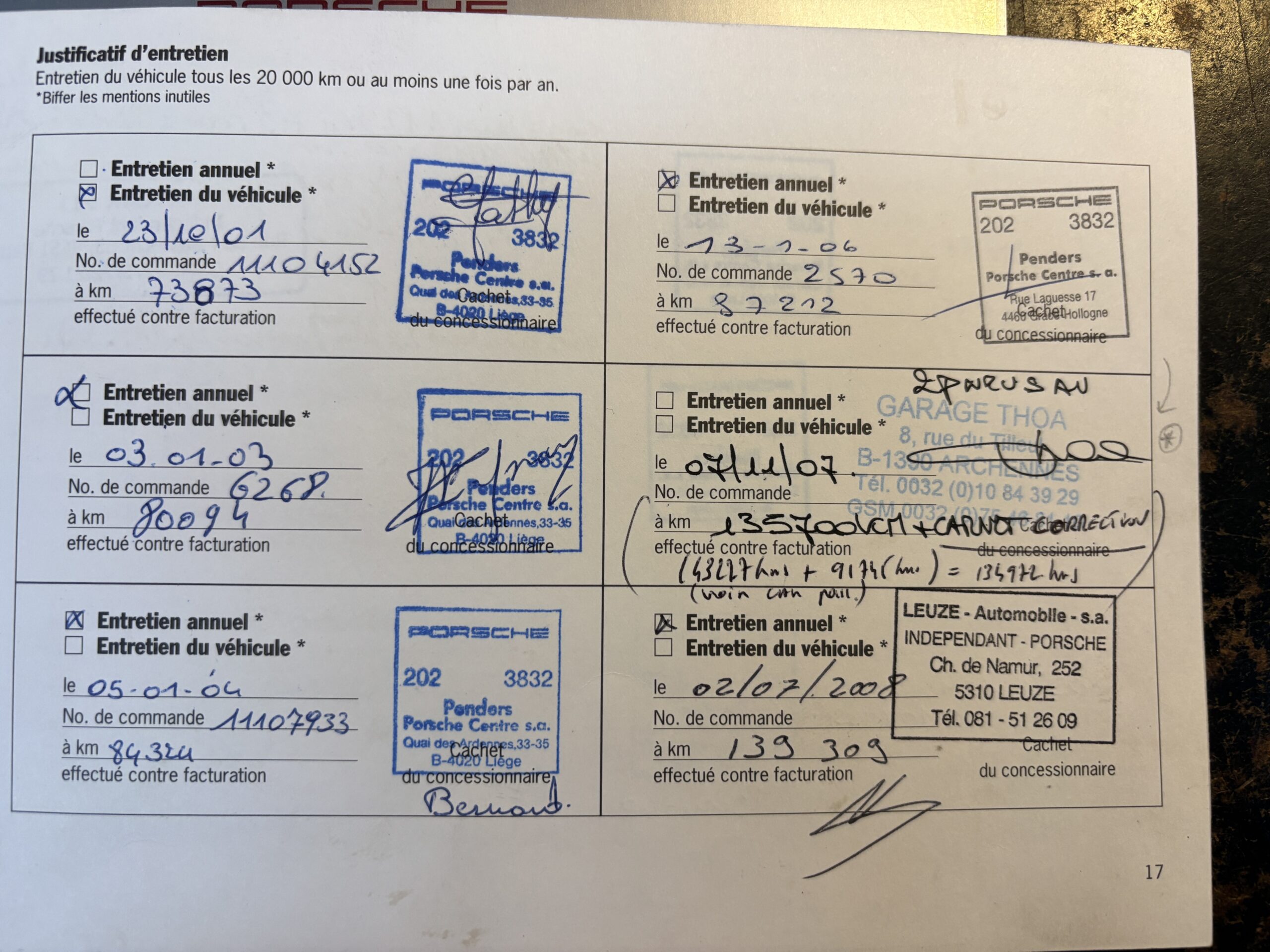 Entretiens effectués par la suite par des garages Porsche Indépendants.