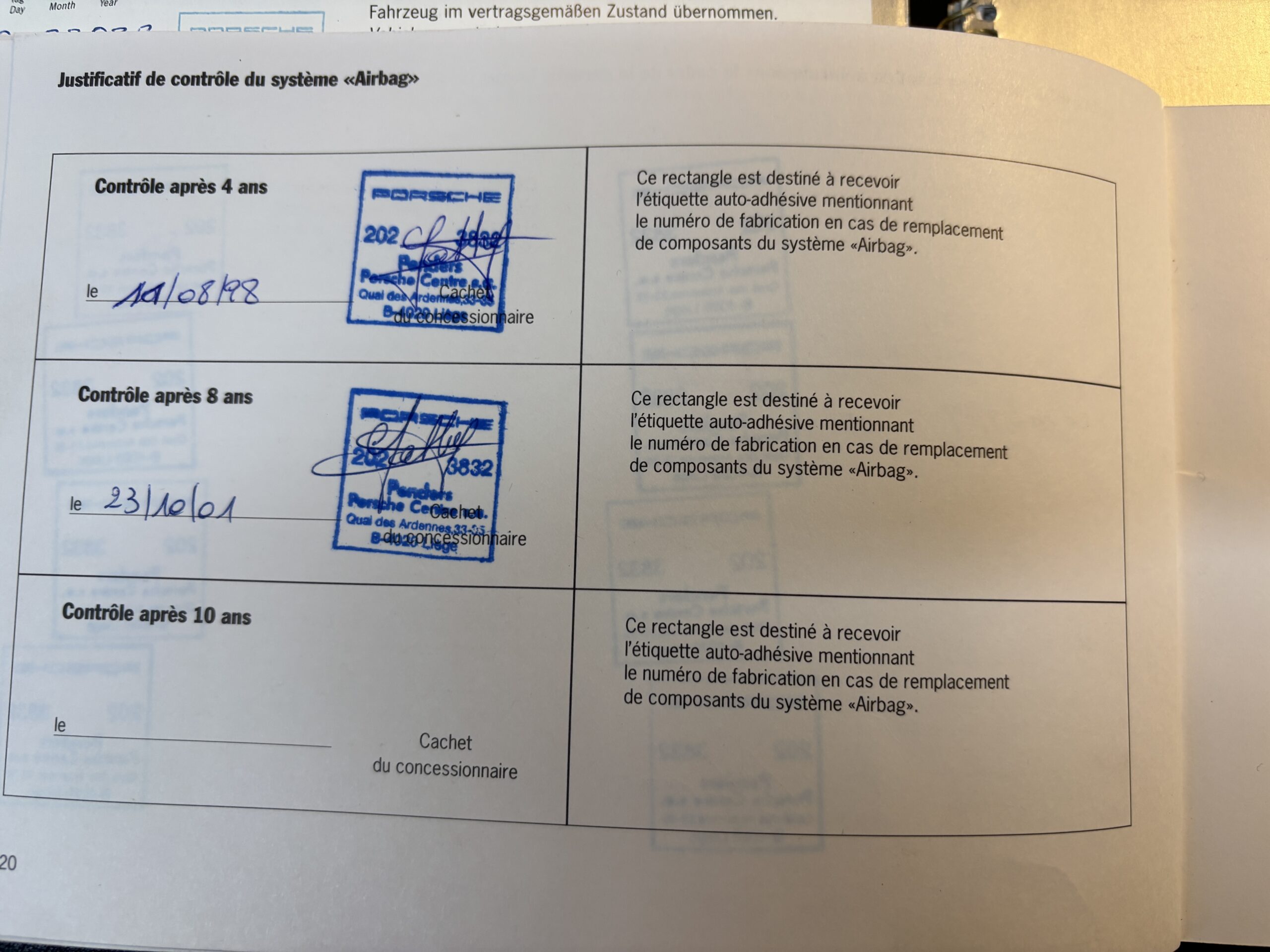 Carnet d’entretiens Porsche d’origine.