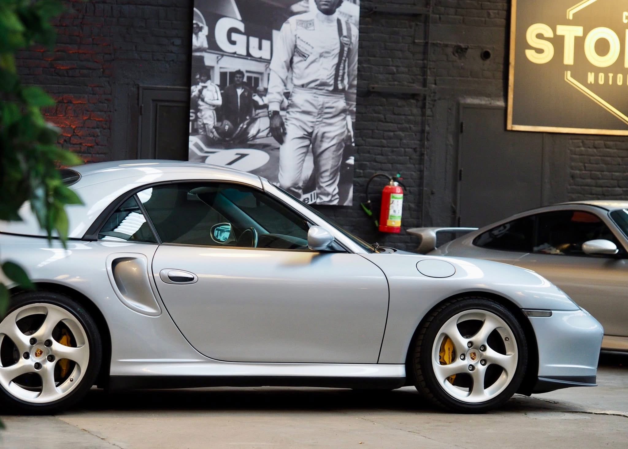Présentation au Store 55 Cars & Motorcycles de notre Exceptionnelle & Rare Porsche 996 Phase II 3.6 Turbo X50 Tiptronic Cabriolet PCCB de mai 2004.