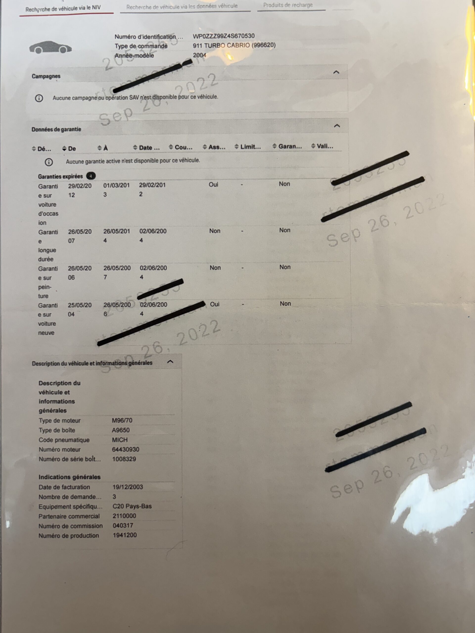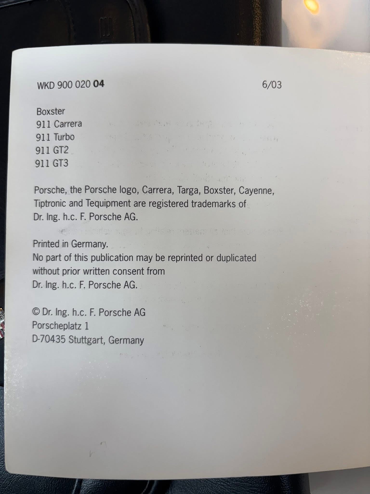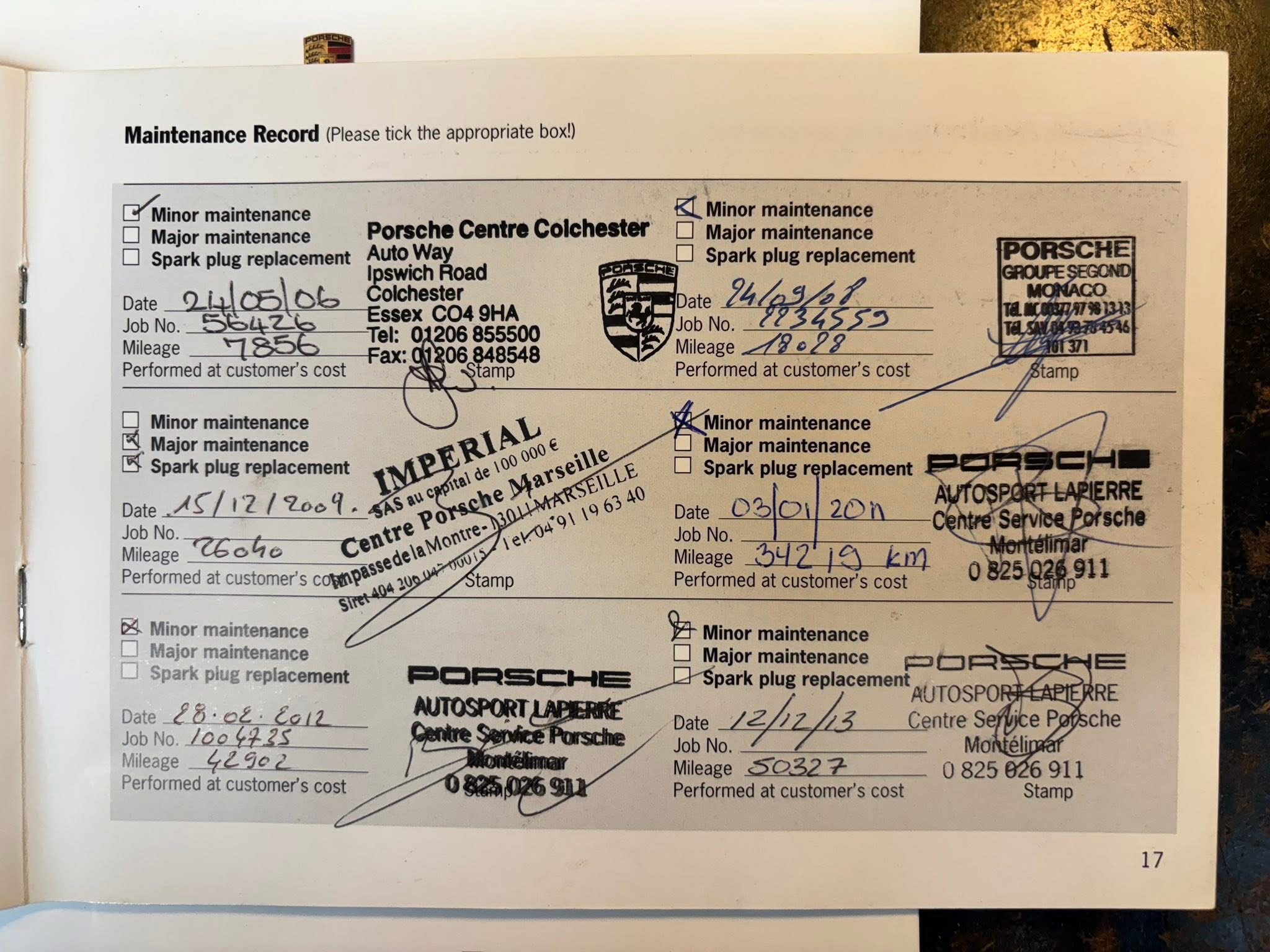 Véhicule livré neuf en mai 2004 au centre Porsche Eindhoven, et expédié directement par son premier propriétaire aux UK jusqu’en 2007. ( voir photo carnet ).